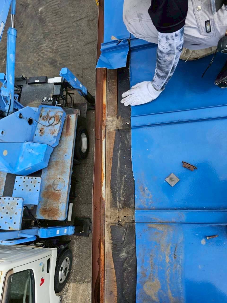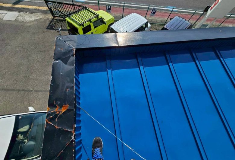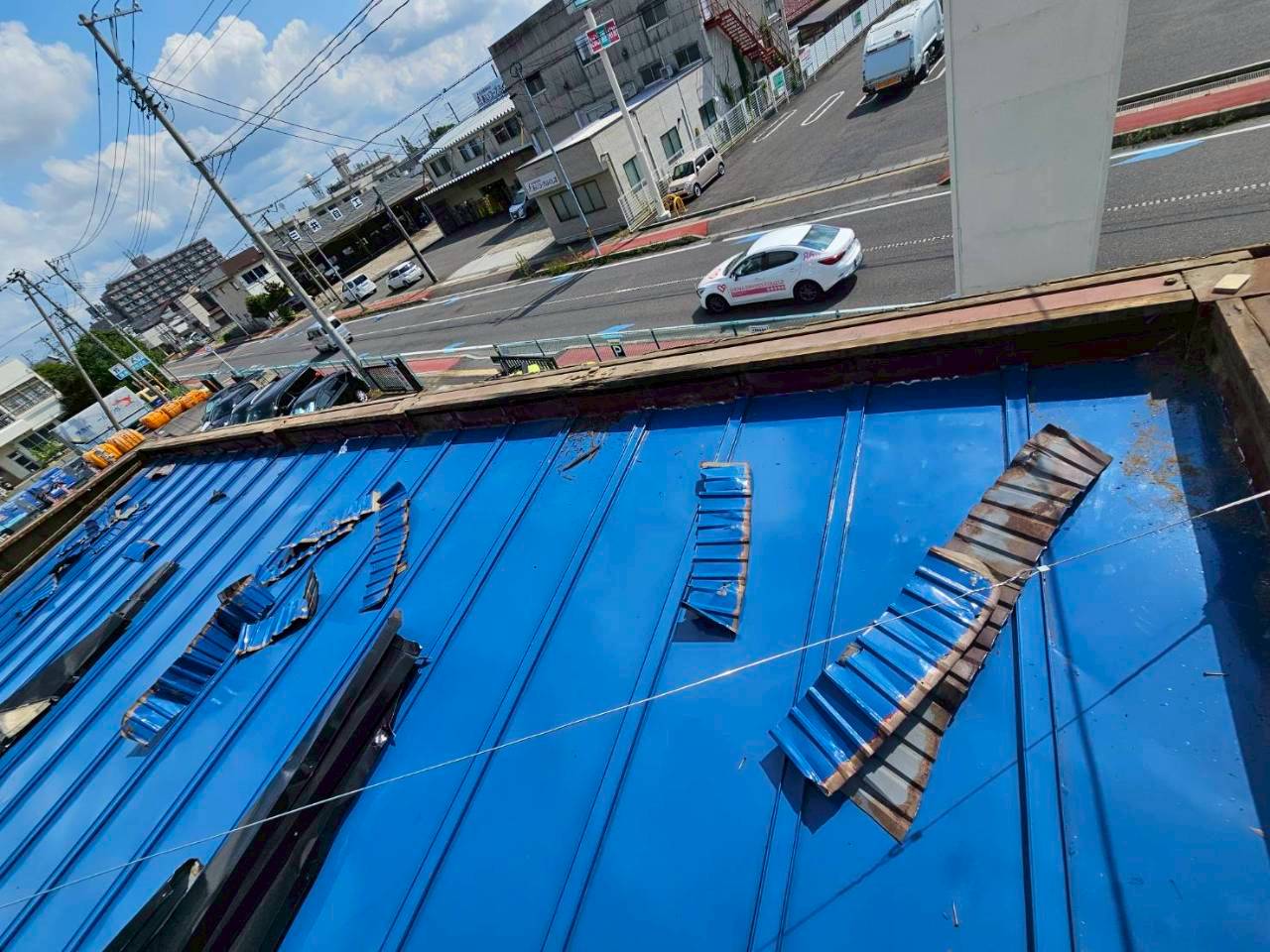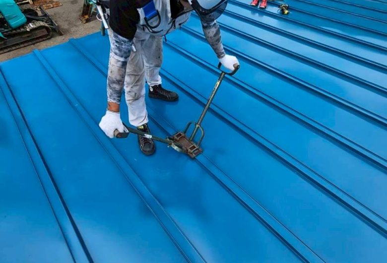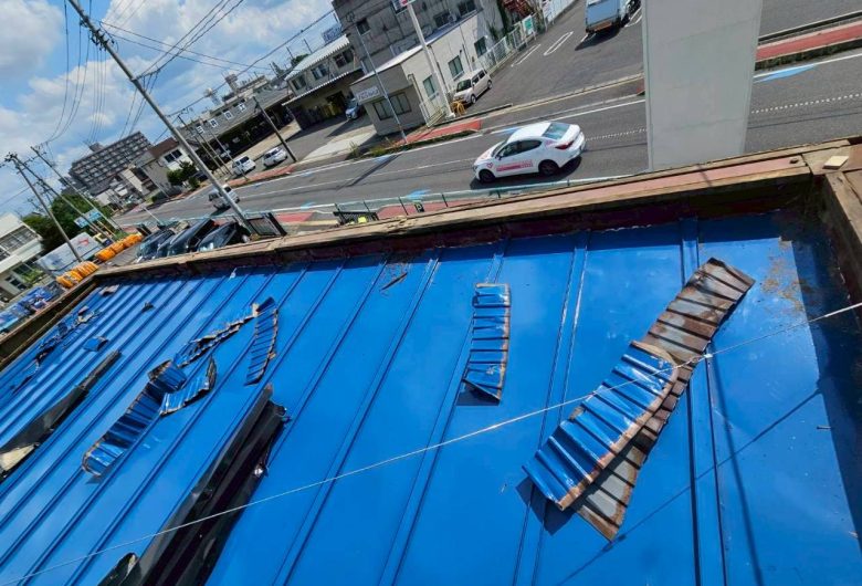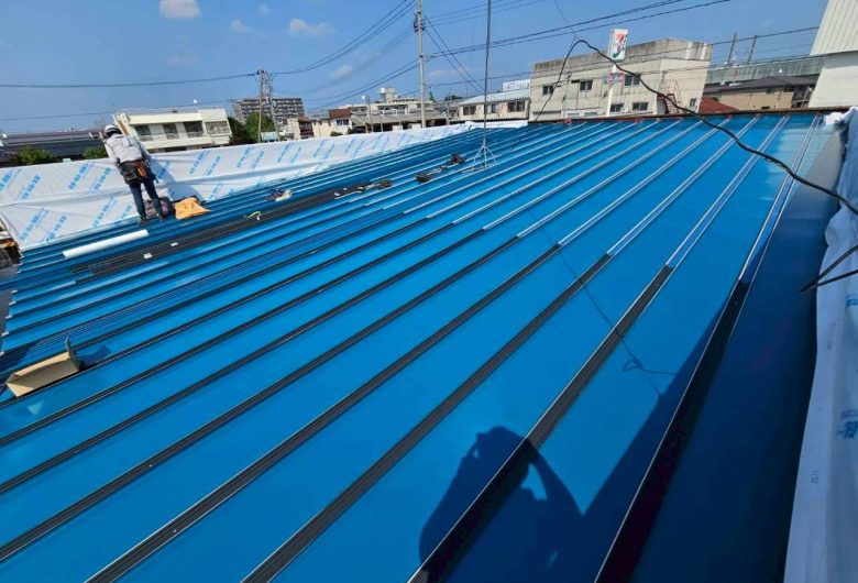 施工中は傷みが激しかった部分の下地補修を行い、板金の重ね合わせや雨仕舞も丁寧に施工。仕上げには鮮やかなブルーの金属屋根材を使用し、明るく機能的な屋根へと生まれ変わりました。