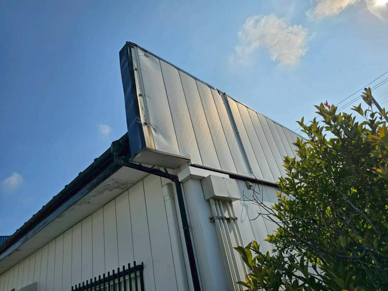 施工前の屋根は、経年劣化やサビ、傷み、浮きなどが目立ち、防水性能や安全性にも不安がある状態でした。そこで今回は、既存屋根を撤去せずにカバー工法で改修を行いました。