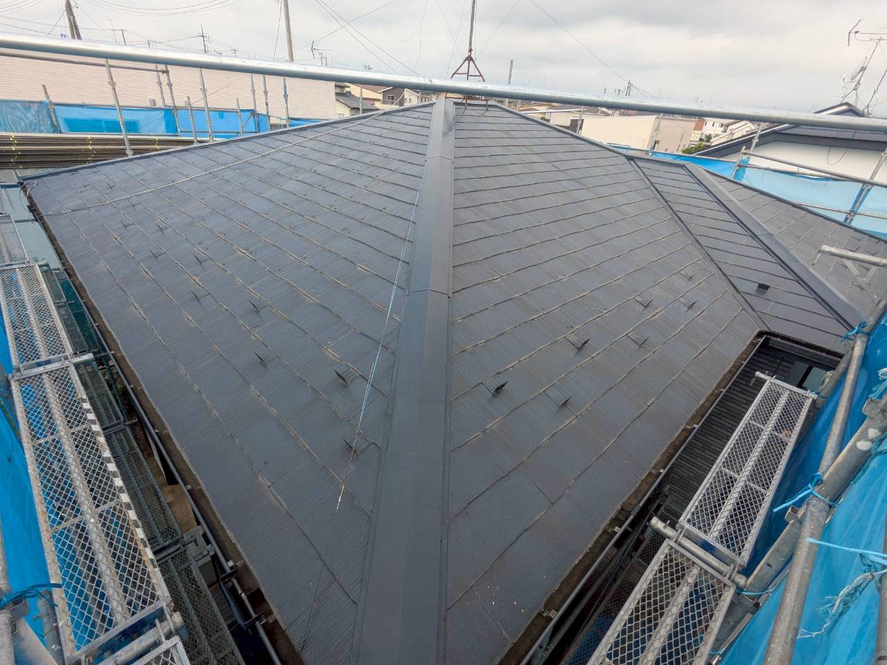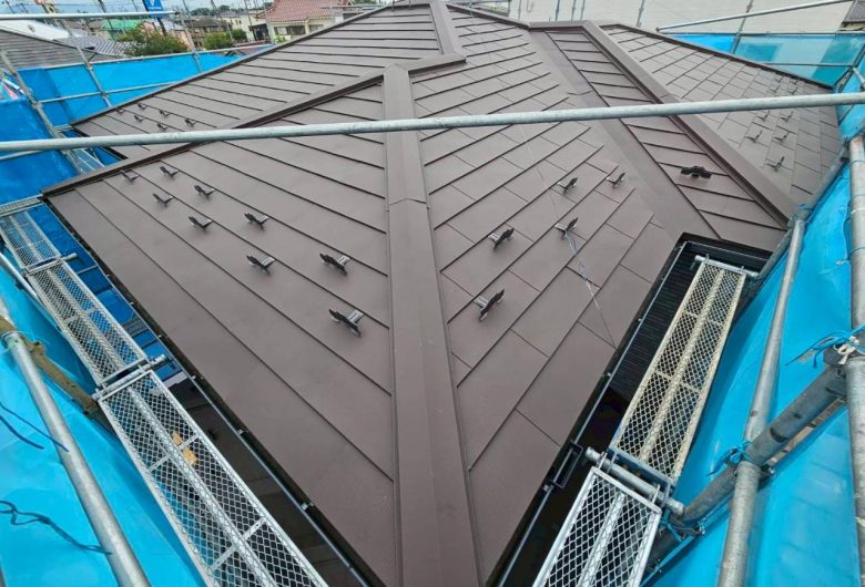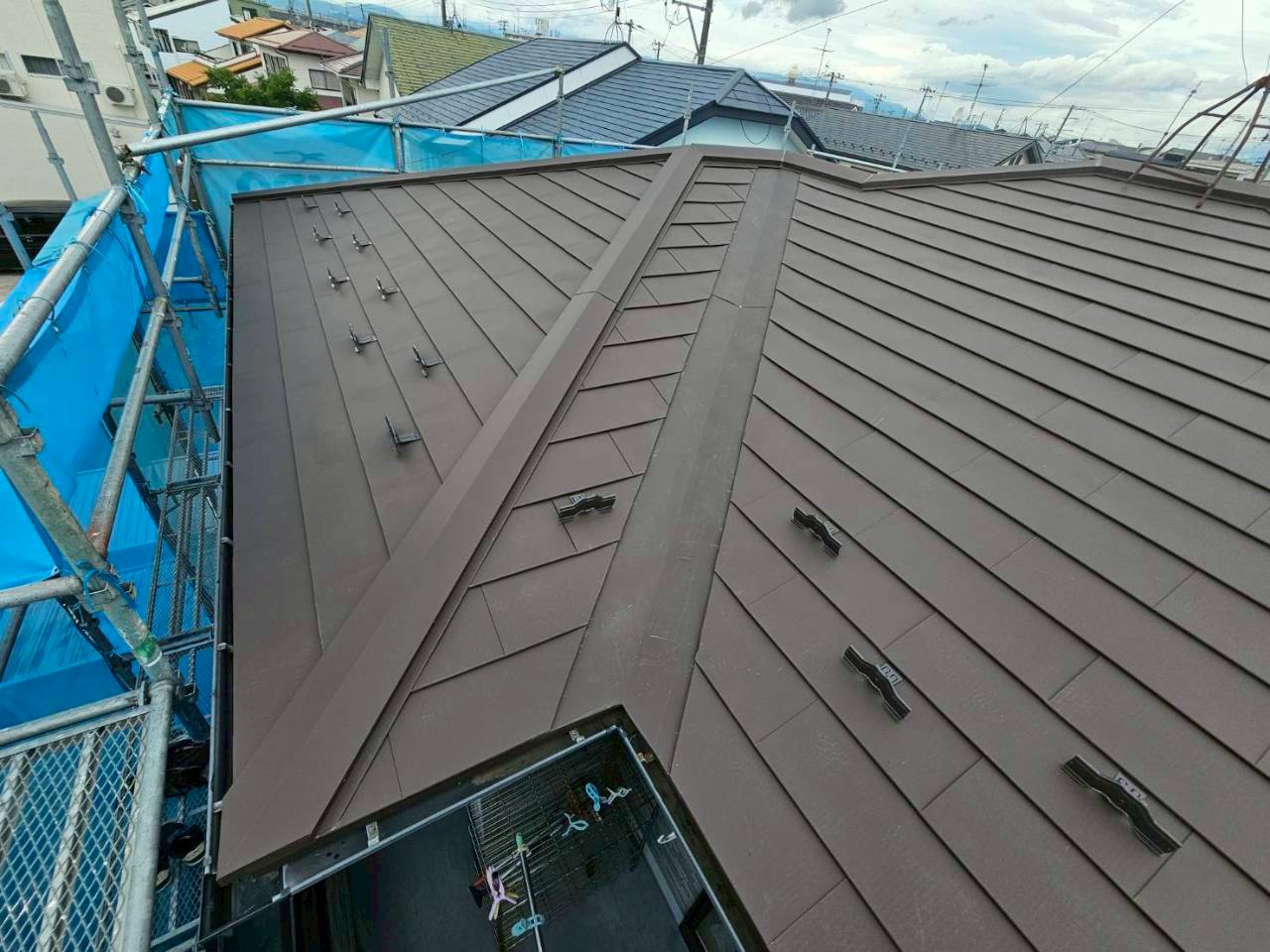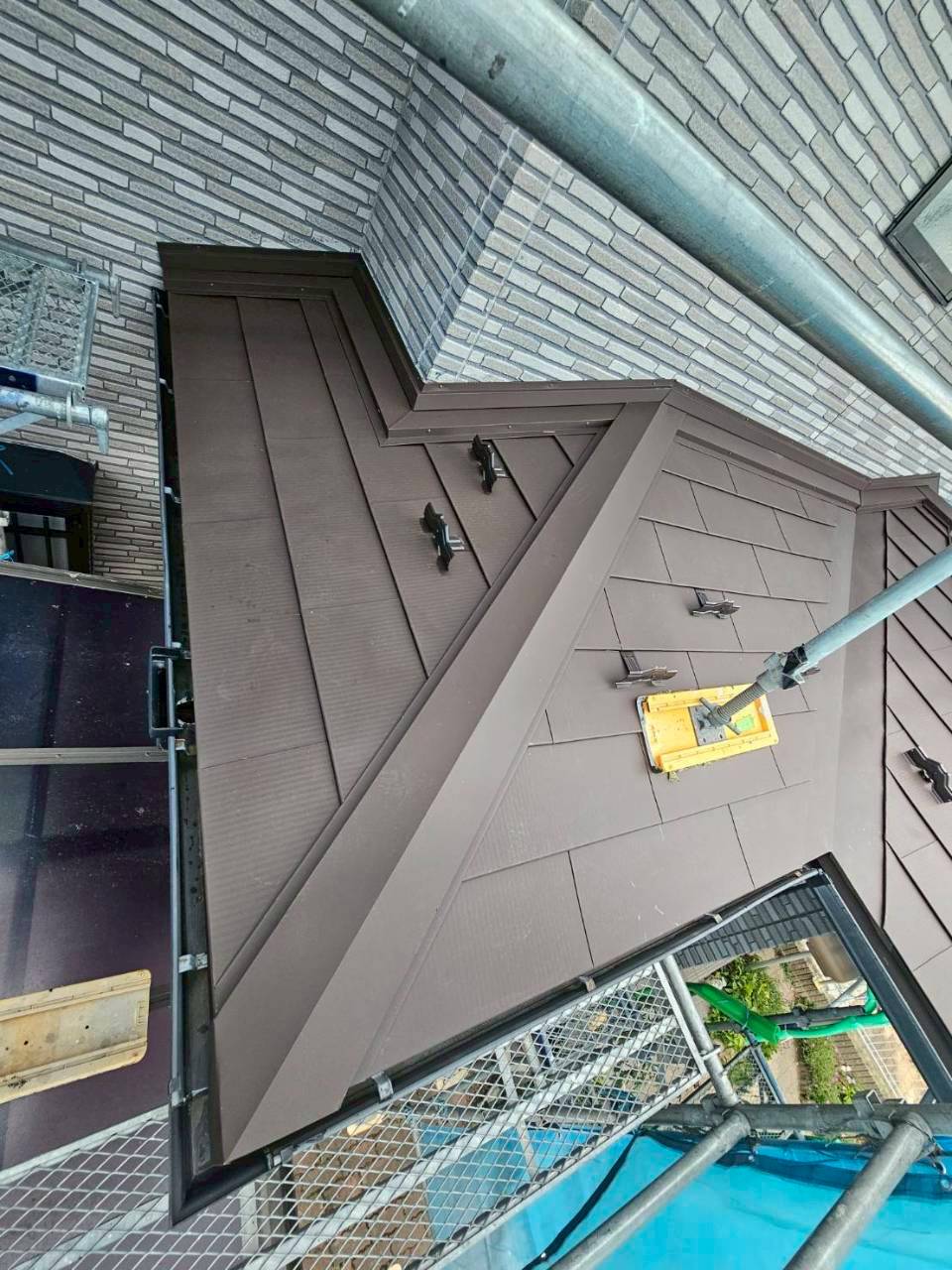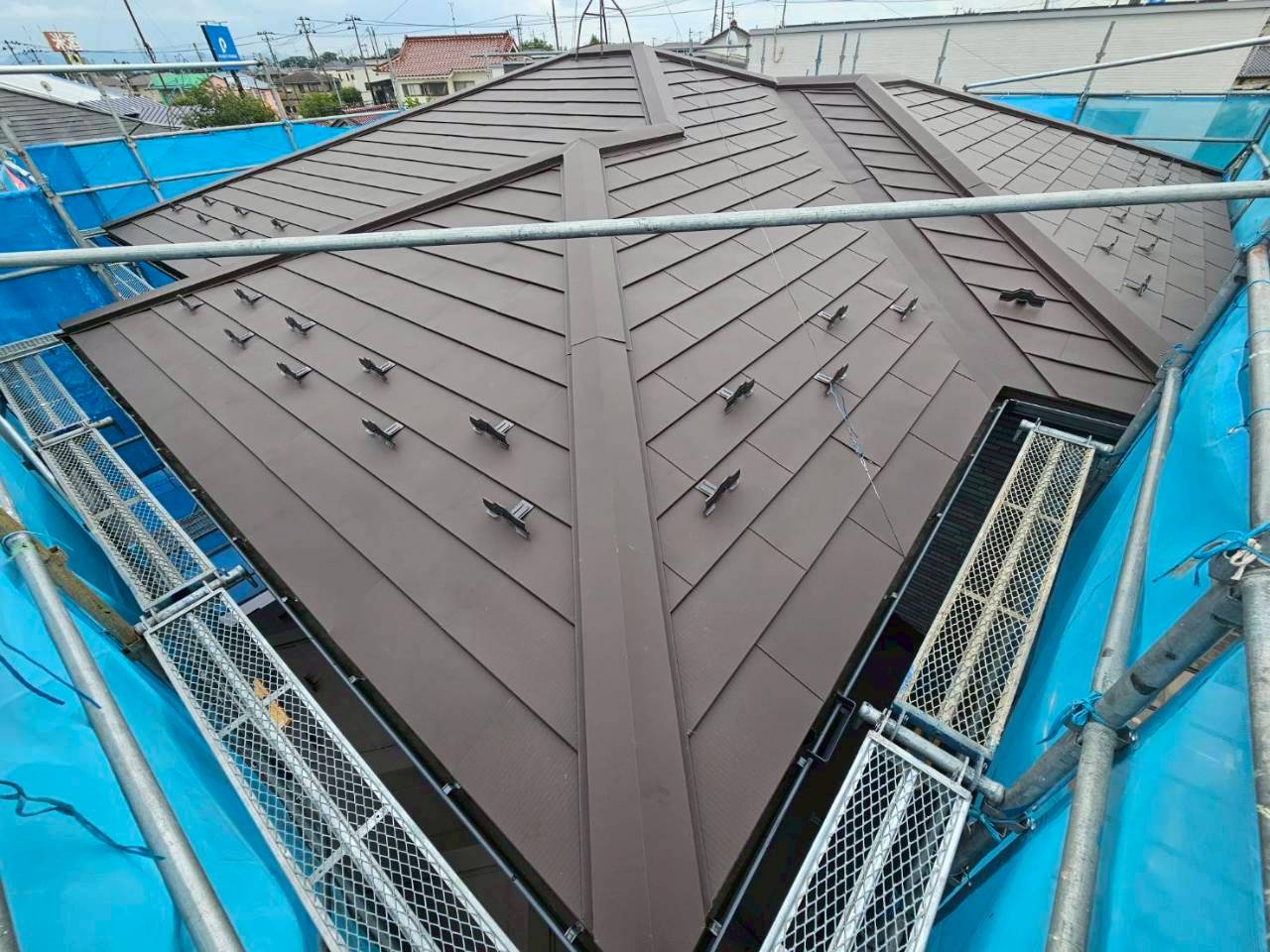 仕上げには金属製の屋根材を施工。既存の屋根を撤去せず、カバー工法で重ねることで、施工中の雨リスクを抑えながら耐久性と防水性を向上させました。見た目も新築のような美しい仕上がりです!